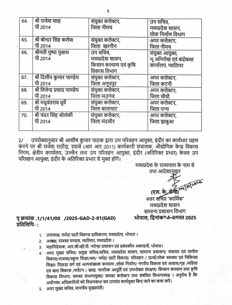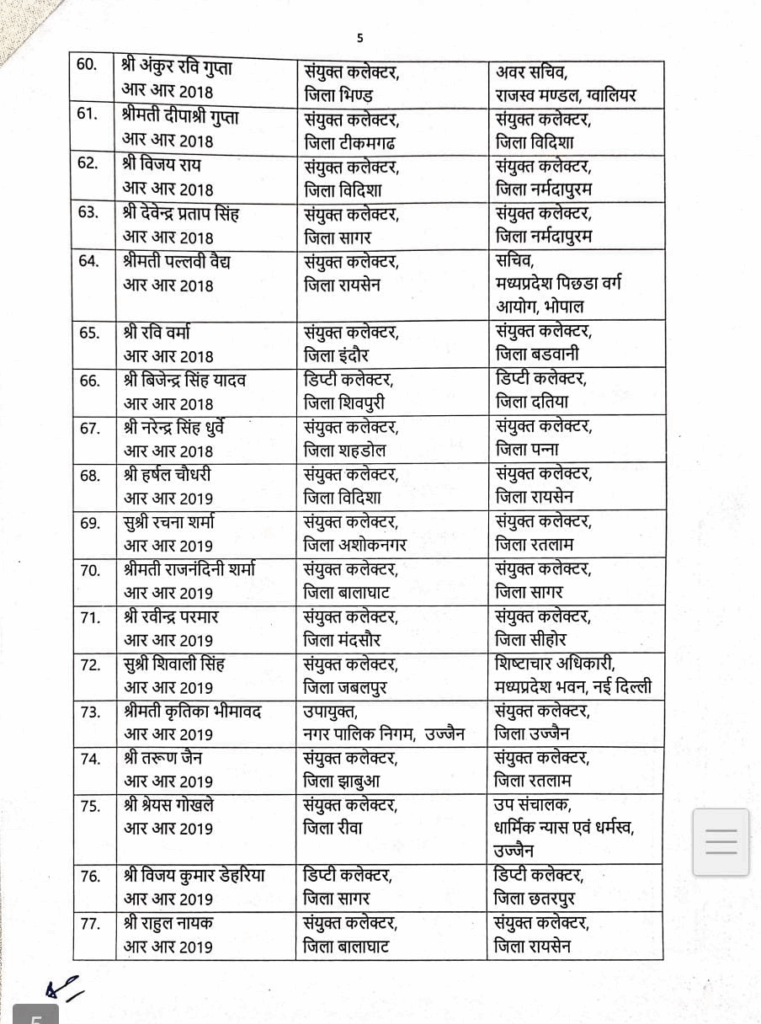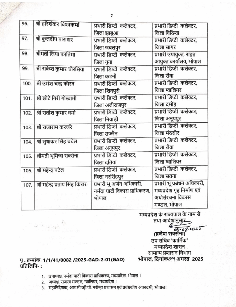 Transfer list of Collectors and State Administrative Service officers in MP: मध्य प्रदेश सरकार ने सोमवार को एक बड़ा प्रशासनिक फेरबदल करते हुए 70 अपर कलेक्टरों का तबादला आदेश जारी किया है। लंबे समय से प्रतीक्षित इस तबादला सूची ने राज्य के नौकरशाही हलकों में हलचल मचा दी है। ये सभी अधिकारी राज्य प्रशासनिक सेवा (एसएएस) से जुड़े हैं और महत्वपूर्ण पदों पर तैनात रहे हैं। सरकार द्वारा लिया गया यह निर्णय आगामी महीनों में प्रशासनिक गति को और प्रभावी बनाने के उद्देश्य से लिया गया बताया जा रहा है।