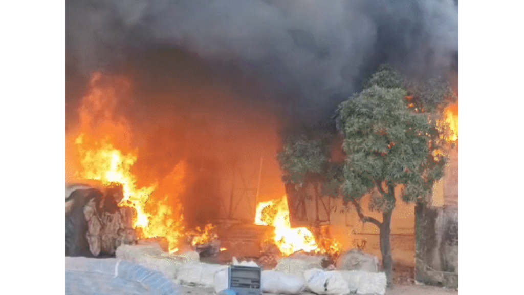 झारखंड के धनबाद शहर स्थित सरायढेला थाना क्षेत्र में गुरुवार सुबह एक बड़ा अग्निकांड हुआ। बलियापुर रोड पर जेपी अस्पताल के पास स्थित बिजली विभाग के गोदाम में अचानक आग लग गई। देखते ही देखते आग ने इतना विकराल रूप ले लिया कि पूरे इलाके में काला धुआं फैल गया, जिससे आसपास के लोगों में अफरा-तफरी मच गई। बताया जा रहा है कि यह गोदाम कोलकाता की ‘लेजर पावर लिमिटेड’ कंपनी का है।