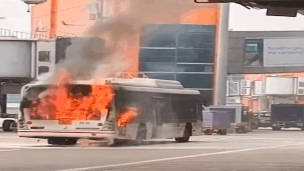 दिल्ली एयरपोर्ट पर बड़ा हादसा टला: एयर इंडिया SATS की बस में लगी भीषण आग